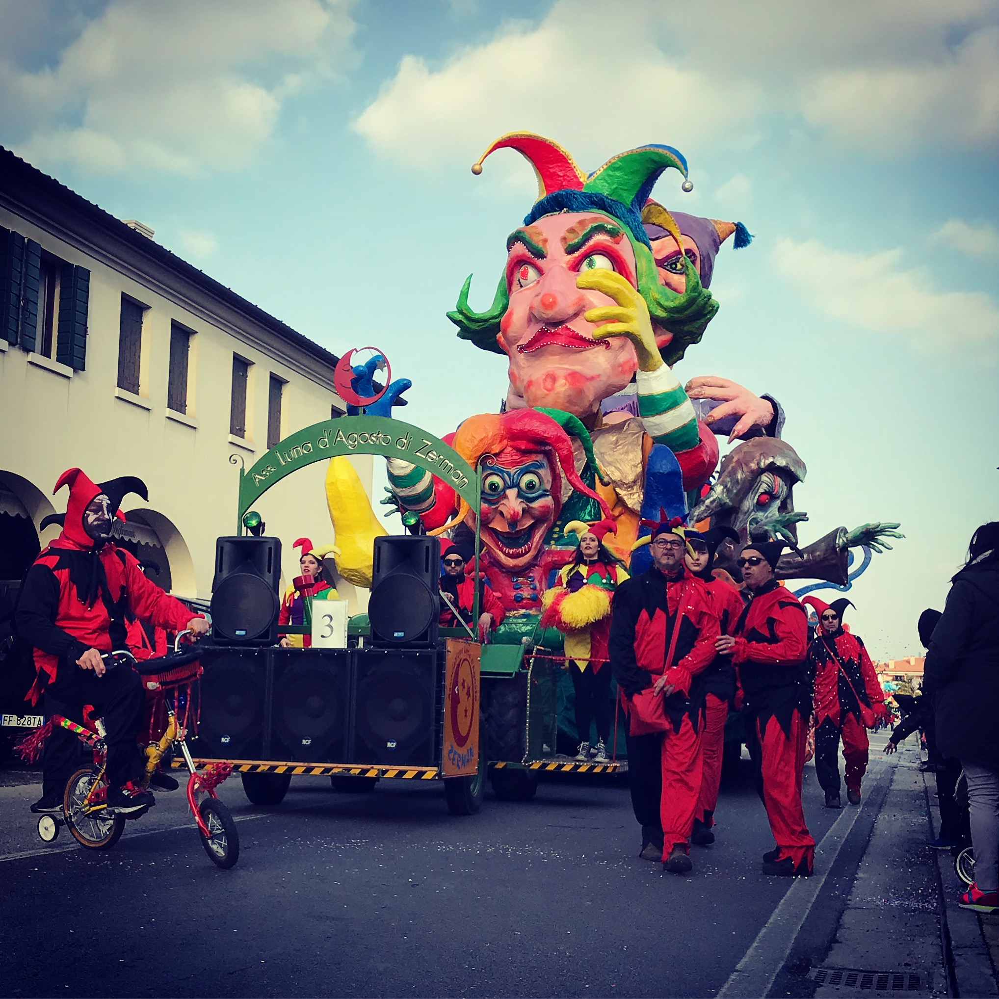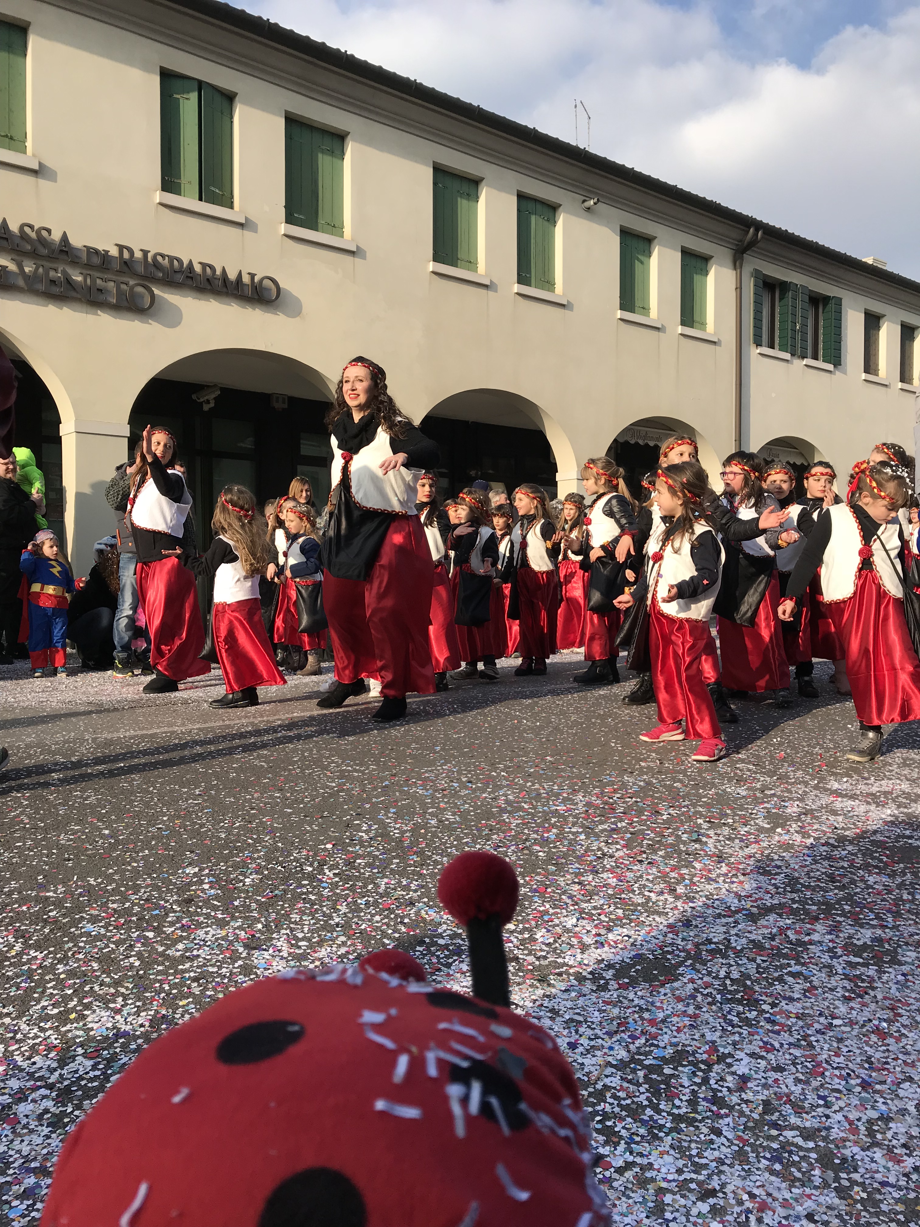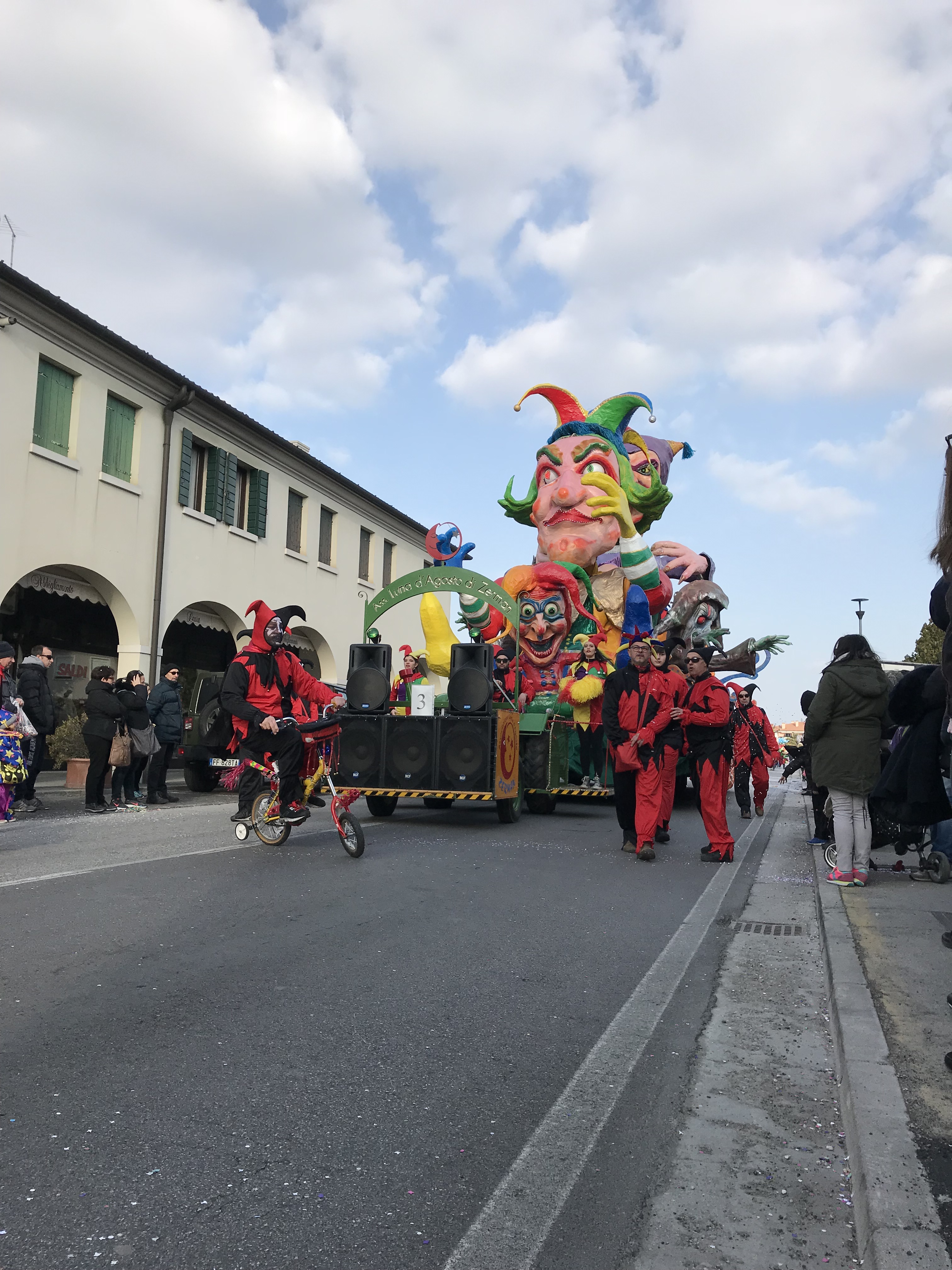 La logistica. Bellissimo pomeriggio d’inverno. La sfilata comincia puntuale, qualche minuto dopo le 14:30. Venendo da Treviso, c’è un grande parcheggio appena fuori la Treviso-Mare. Di lì, in circa 15 minuti si raggiunge il posto della sfilata. La strada è bloccata al traffico e se è una bella giornata, è davvero una piacevole giornata.