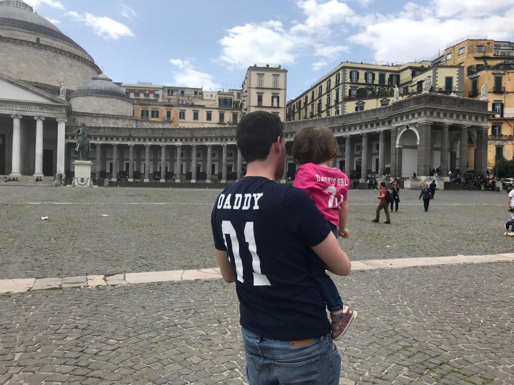 Parcheggiamo al parcheggio della stazione Garibaldi, da cui decidiamo di andare a piedi verso il centro. Ci perdiamo nell’intrico delle vie napoletane: è un brusio continuo di persone e voci, tutti sono indaffarati fra mercato, negozi e altro. Anche Lizzie osserva curiosa e non stacca gli occhi da persone e oggetti, e soprattutto non vuole stare nel passeggino ma piuttosto prova a camminare (o meglio, a farsi largo) fra le persone e le bancarelle.