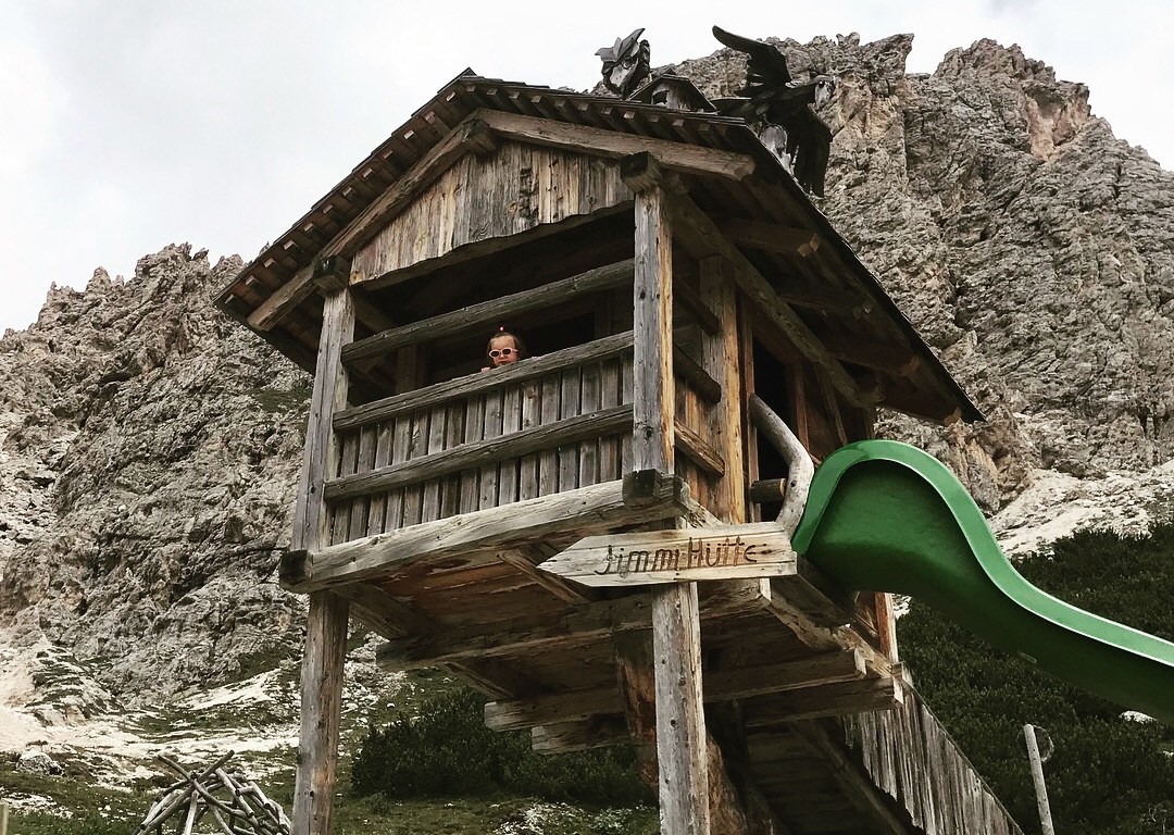 - il rifugio Jimmy è un gioellino dentro, un rifugio di un’altra volta. Fuori un grande terrazzo e tanti giochi per i bimbi (la casetta, il tappeto elastico, la vasca con la sabbia, lo scivolo…)