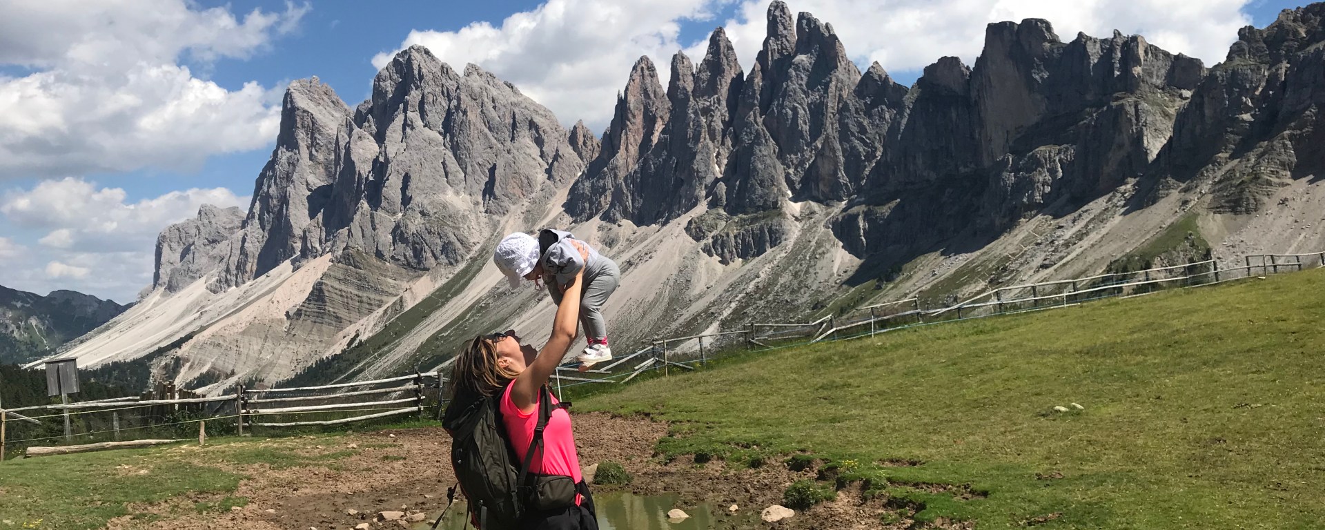 Da qui il sentiero riprende in salita, tra grandi prati e brevi tratti all’ombra del bosco. Mano a mano che si procede l’orizzonte si apre sulle Odle, fino ad averle completamente davanti. La luce del mattino purtroppo non le illumina: ricordatevi di fare la foto nel pomeriggio.