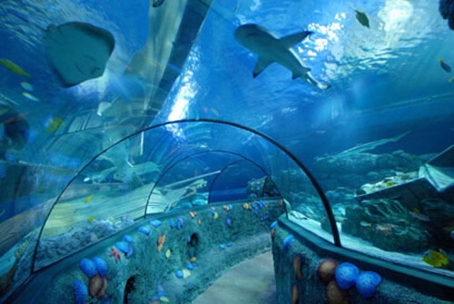 Negli acquari ci sono i pesci più comuni (come le tinche, i pesci gatti), ma anche i pesci tropicali delle barriere coralline. Sicuramente la vasca più grande con gli squali e le razze è l’attrazione principale.