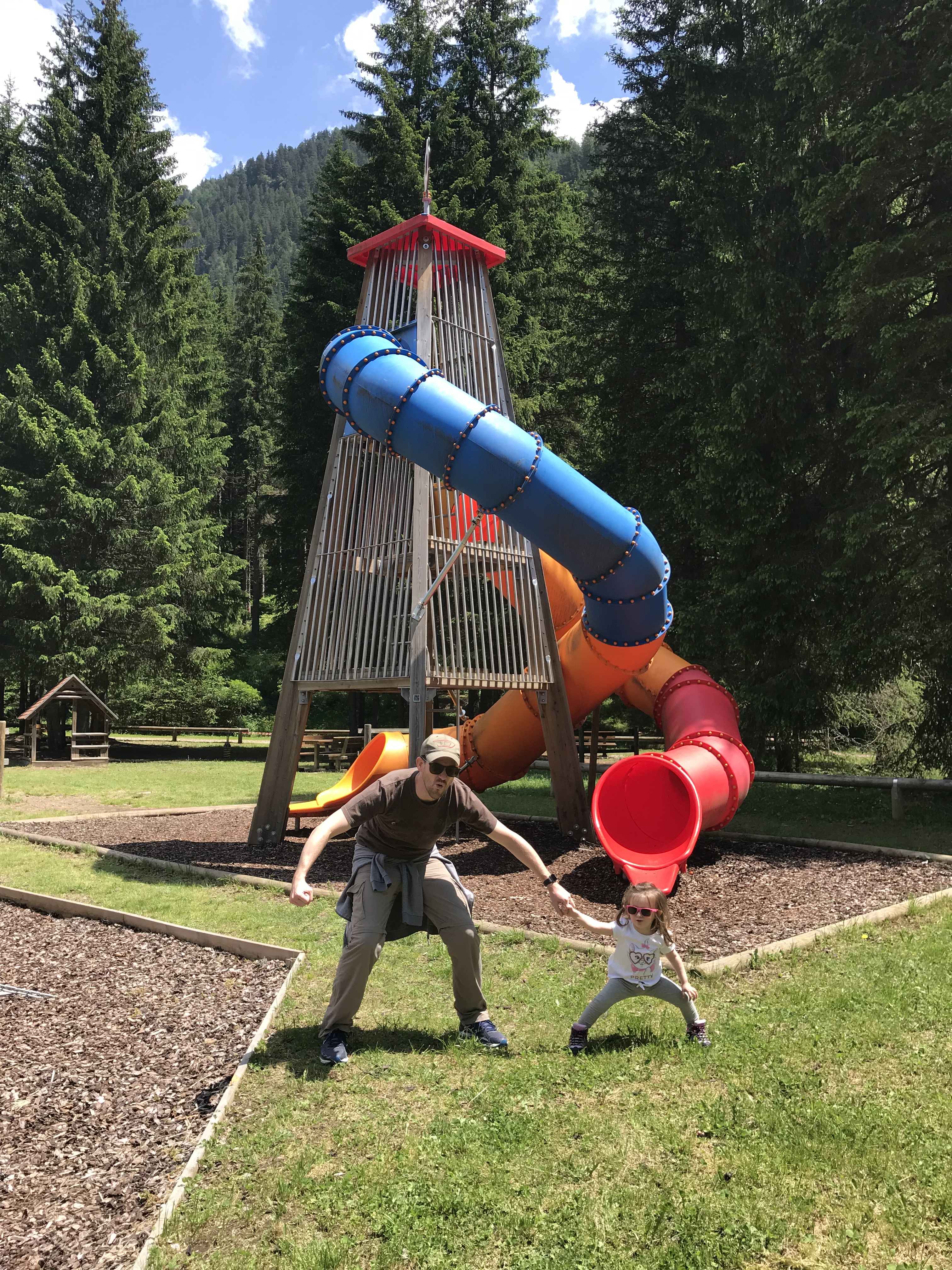Si tratta di un nuovo record: 5 parchi giochi in un giorno non li avevamo mai fatti. Come è possibile? Semplice: percorso la ciclabile della Val di Fassa in bicicletta!