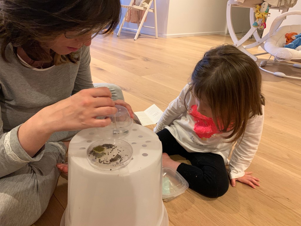 - una scatolina con tre bruchi e il loro cibo iniziale
