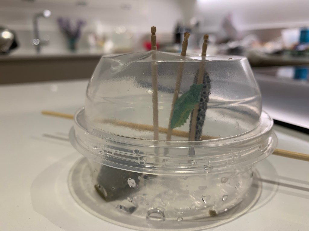 Purtroppo uno dei bruchi ci ha lasciato. Abbiamo scoperto che in natura solo 1 su 50 arriva a diventare farfalla.