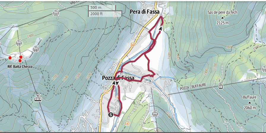Punto di partenza: Pozza di Fassa. Suggeriamo di parcheggiare al parcheggio delle terme. Venendo da Moena, si passa la rotonda di Vigo, il piccolo ponte sul torrente e si prende la prima strada che scende a destra. Da lì troverete le indicazioni per il parcheggio, in un grande prato vicino al torrente. E’ gratuito.