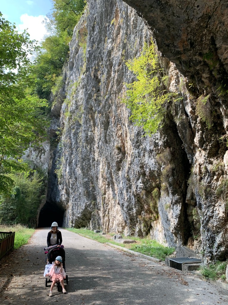 Per i monellini valutate l’opzione monopattino: la discesa (a parte qualche centinaio di metri all’inizio) è piacevole e non troppo pericolosa.