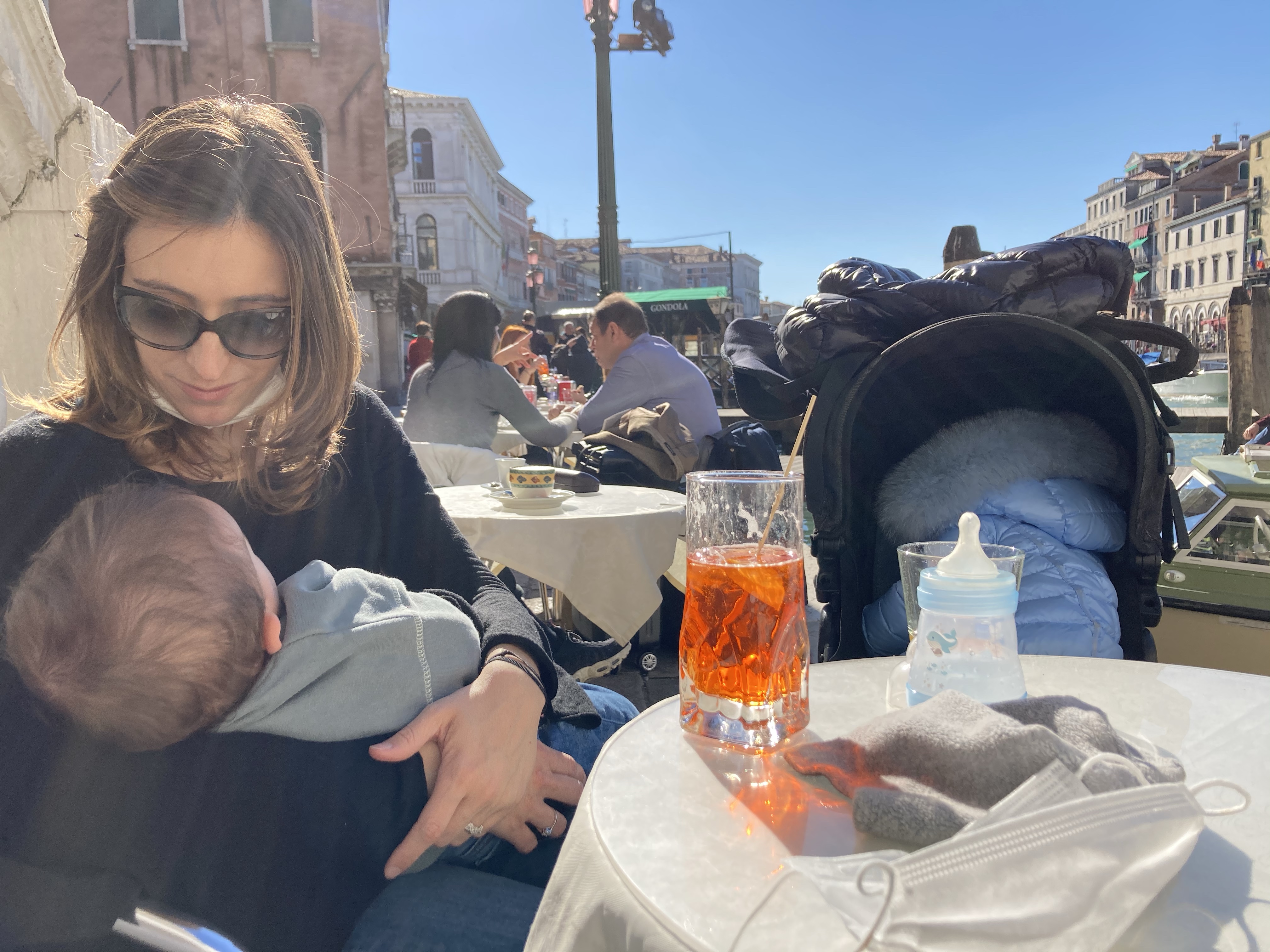 Ci incamminiamo verso Rialto: alle 14:00 è ancora poco affollato e riusciamo a berci uno sprint al bar, proprio sotto il ponte.