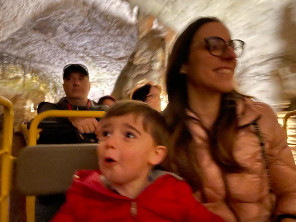 La visita è spettacolare: un trenino per 20 minuti vi porterà a spasso per le grotte. Poi un km abbondante di camminata, con un discreto dislivello, ma percorribile da tutti (passeggini compresi). Ritorno in trenino.