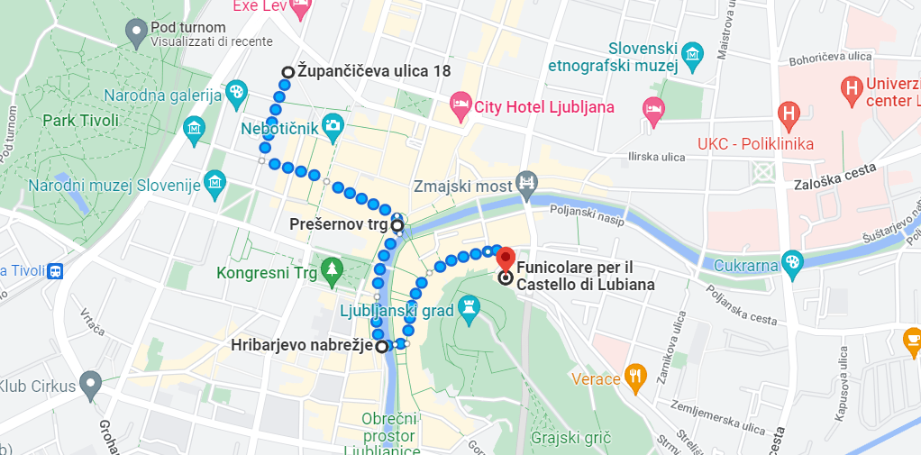 Il centro storico. Dal parco Tivoli una piacevole passeggiata porta in circa 15 minuti nella piazza principale, piazza Preseren, cuore pulsante della capitale. Da qui le principali attrazioni sono tutte vicine: il triplo ponte, la passeggiata lungo il fiume, la piazza del mercato. La mattina gironzoliamo su e giù per il lungofiume, ammirando gli scorci e intrufolandoci nelle viette.