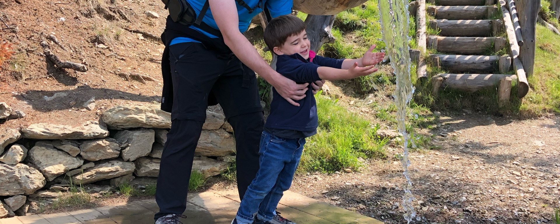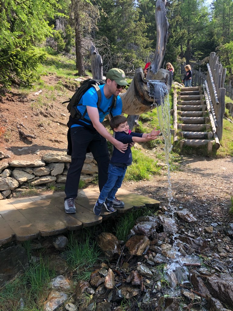 La prima tappa è il villaggio degli gnomi, un posto che assomiglia molto villaggio dei sette nani: off-limits per i genitori, un paradiso per i piccoletti. Dentro le casette i tavoli degli gnomi, e perfino uno scivolo! Poco più in alto una piccola cascatella.