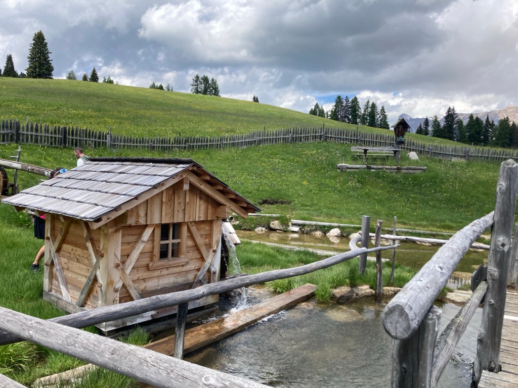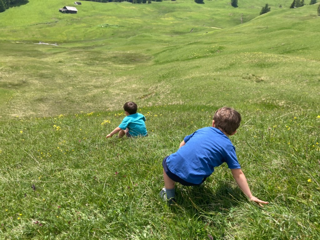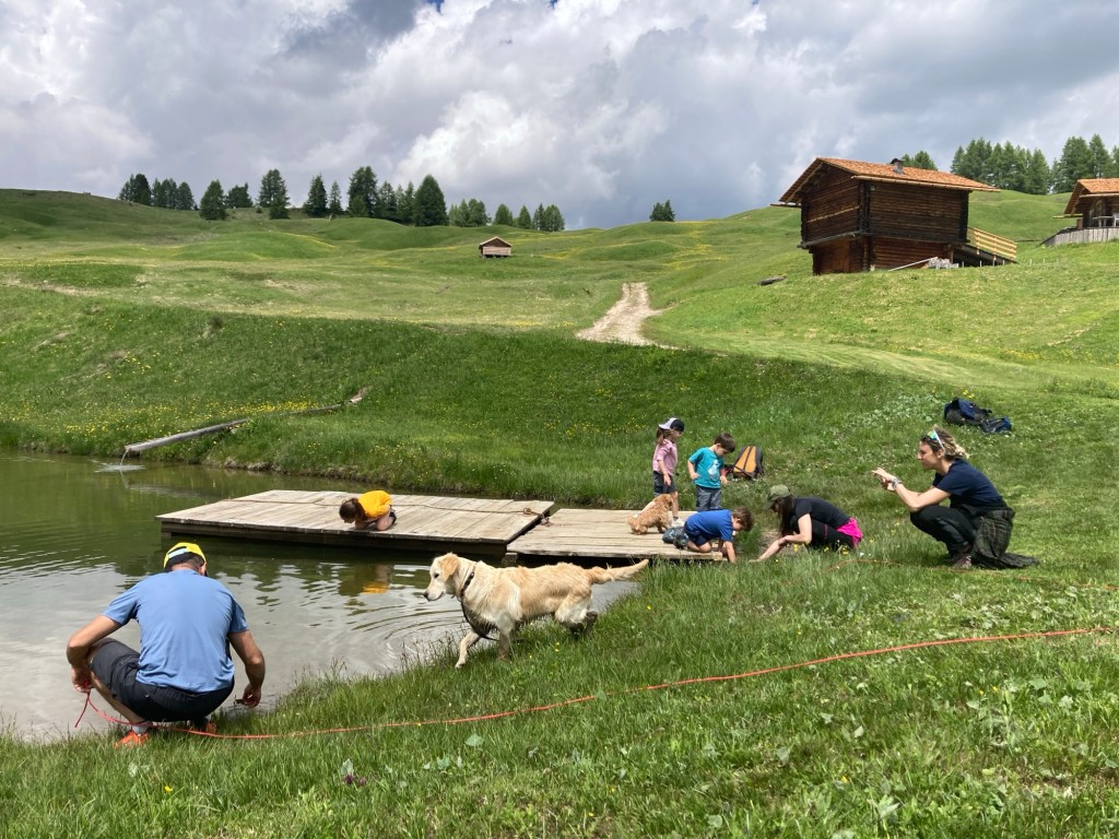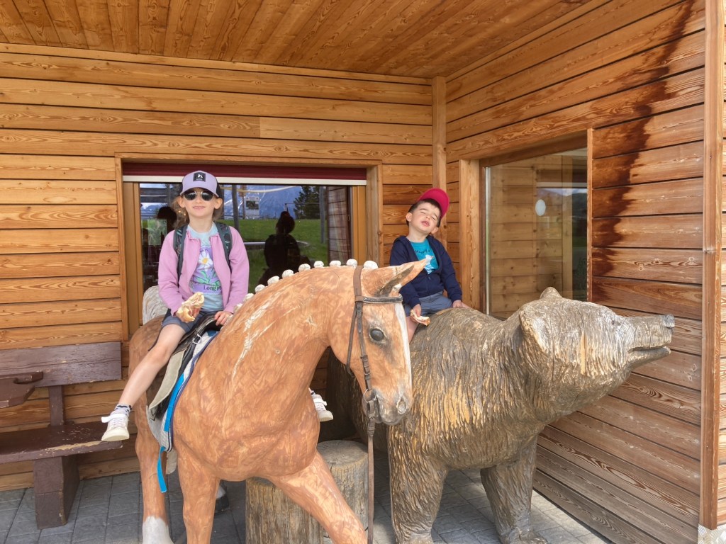 L’escursione inizia con un’emozionante corsa in ovovia fino a Piz Sorega. Una volta in cima, ci accoglie un rifugio accogliente e uno dei famosi parchi Movement. Qui, i bambini possono divertirsi con giochi d’acqua e altre attività all’aperto.