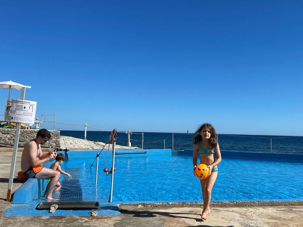 I bambini si sono divertiti a giocare con i ciottoli e a rinfrescarsi nell’acqua calma, mentre noi ci siamo goduti la tranquillità e il panorama.