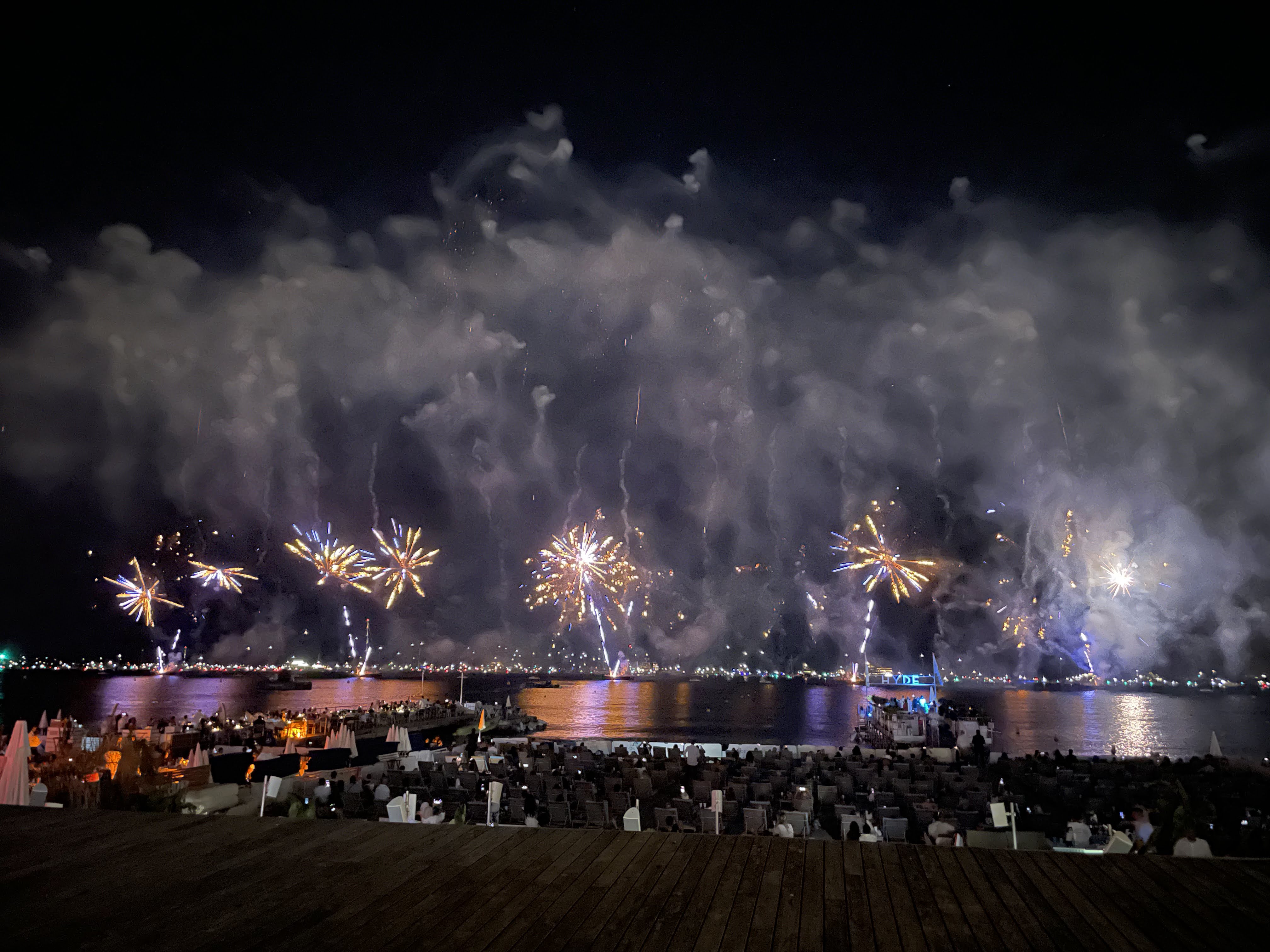 - Essendo Ferragosto, Cannes ha regalato uno spettacolo incredibile con i fuochi d’artificio sul mare. Abbiamo trovato un posto perfetto sulla spiaggia per ammirare il cielo illuminarsi di colori spettacolari, in un’atmosfera magica.