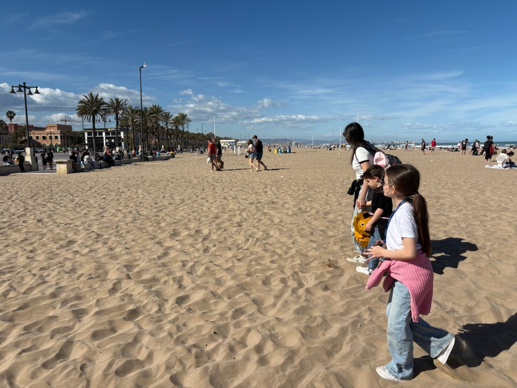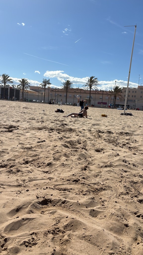 La spiaggia di Valencia è immensa… ci ricorda vagamente quella di Miami con le sue immense palme ordinate. Tra una partita a calcio improvvisata e una serie infinita di ruote sulla sabbia, il tempo è volato via