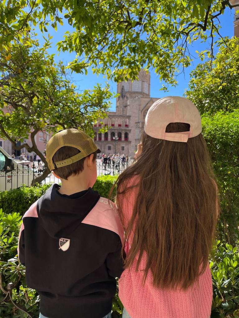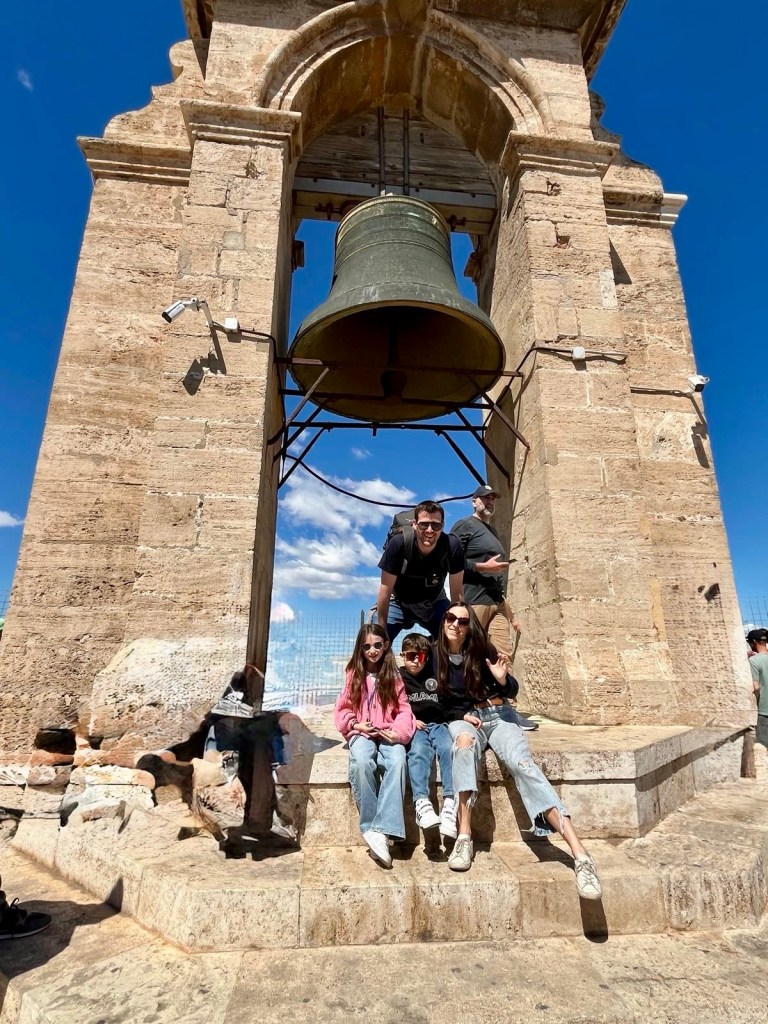 Ma il pezzo forte della giornata doveva ancora arrivare. Siamo tornati in Plaza de la Reina per grande missione: la salita sulla torre del Miguelete, con i suoi 207 gradini. La scala a chiocciola è stretta e antica, un’avventura vera per i bambini che facevano a gara a chi arrivava prima. Arrivati in cima, il fiato corto è stato subito rimpiazzato dalla meraviglia. Vedere tutta Valencia dall’alto, con le sue cupole blu e il mare in lontananza, ci ha fatto sentire i re della città! Attenti a non arrivare quando suona la campana!