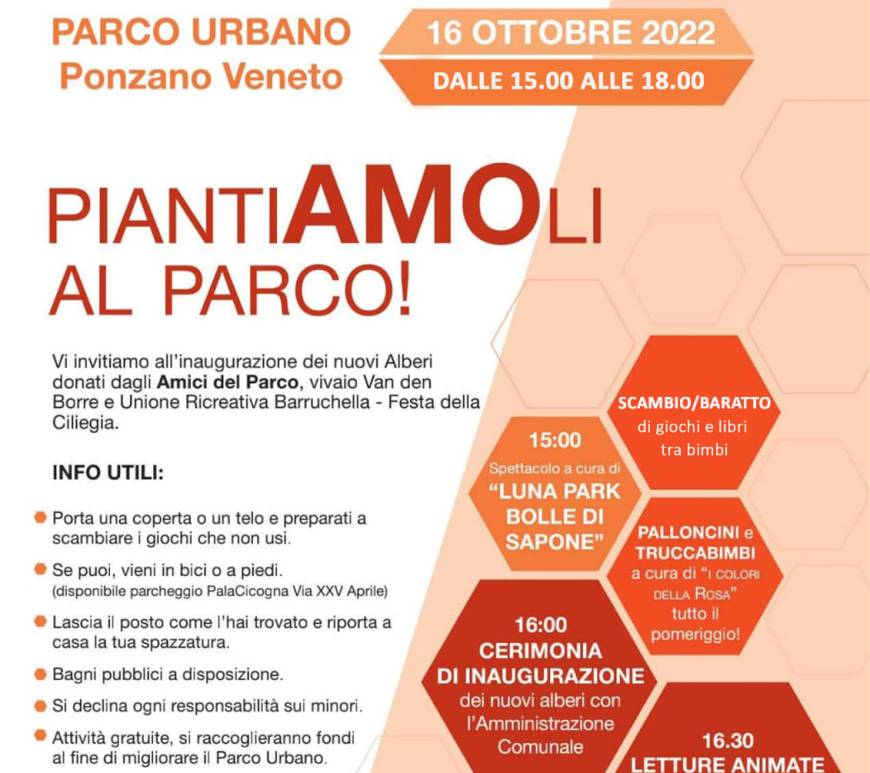 Partenza: Parco Urbano (parcheggio da via Ruga) Lunghezza: circa 5 km Attrazioni particolari: cavalli, asinelli, oche, galline, gatti, tacchini, alberi da frutto in fiore, parco giochi, orto urbano Acqua: fontanella al Parco Urbano, all’inizio della passeggiata Bar: con una piccola deviazione si raggiunge l’osteria da Marchi MAPPA DEL PERCORSO Dopo aver parcheggiato, percorrete il parco in tutta la sua lunghezza: sulla sinistra avrete i campi … Continua a leggere Due passi a Ponzano Veneto… colori di tutte le stagioni!